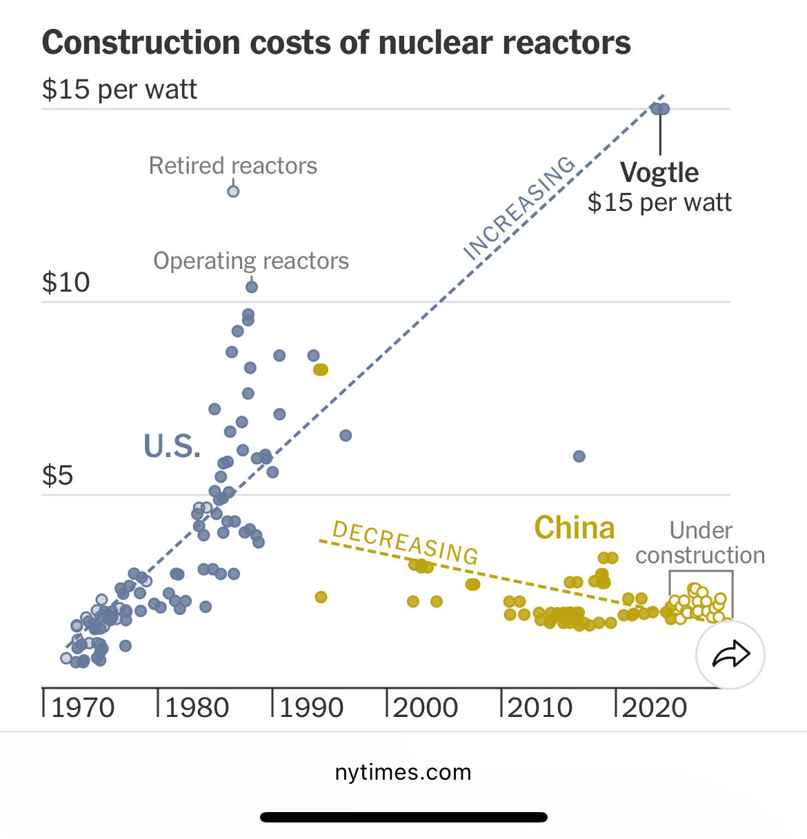 That graphic comparing nuclear construction costs in USA and China is pretty stunning… and depressing. I would be curious to see South Korea on the same graphic.