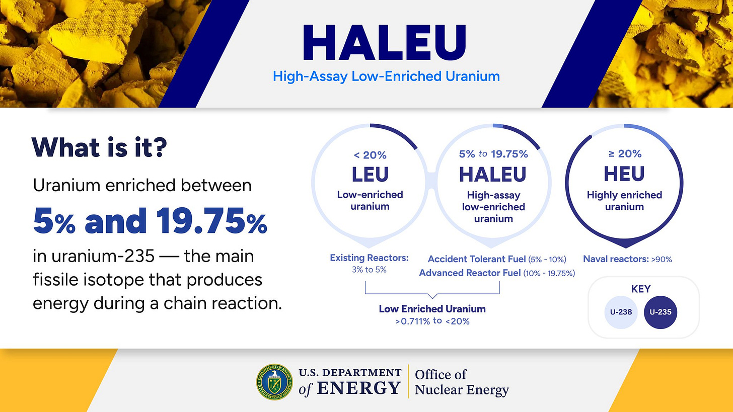 Just in case you’re wondering what the difference is between LEU and HALEU fuels.