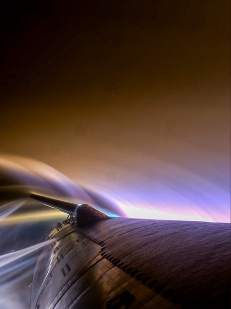 Starship Flight #4 most successful yet. SpaceX’s Starship flight #4 took to the skies on June 6th, with both booster and the upper stage making successful soft landings in their respective oceans (Gulf of Mexico for the booster, Indian ocean for the upper stage). The test ticked all the boxes SpaceX was hoping for, especially with the main Starship vehicle surviving reentry. It was also the first virtually continuous video of reentry into Earth's atmosphere ever. It did cut out briefly a few times, but always came back despite the one surviving camera cracking and becoming almost (but not quite) completely covered with debris. I was glued to my screen during the absolutely epic flight, especially the reentry—like something off a sci-fi movie. Probably the most incredible part was seeing that one flap slowly disintegrating, and thinking “we’re so done,” but then it held on all the way to a soft water landing. Can’t wait for flight #5, where the plan is for the landing tower arms to catch the booster. Elon Musk after the flight: “Today was a great day for humanity’s future as a spacefaring civilization! Nothing unites us more than working together towards inspiring objectives.” Indeed!