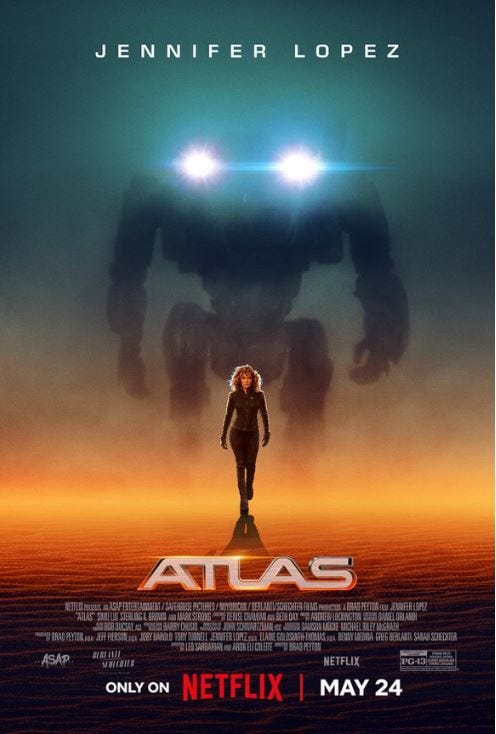 Today, I’m reviewing Atlas, a movie I recently watched on Netflix. Overall, I’d say it’s a really good B movie sci-fi adventure—quite entertaining. What made me choose it for today though is its portrayal of artificial intelligence. On the surface, it's a familiar plot [warning, serious spoilers ahead]: a rogue AI wants to destroy most of humanity in order to "save" it. So a special team, helped by a brilliant scientist with trust issues is sent in to stop him. Netflix labels it as dystopian sci-fi, but beneath a thin dystopian veneer, it's actually very techno-optimist.